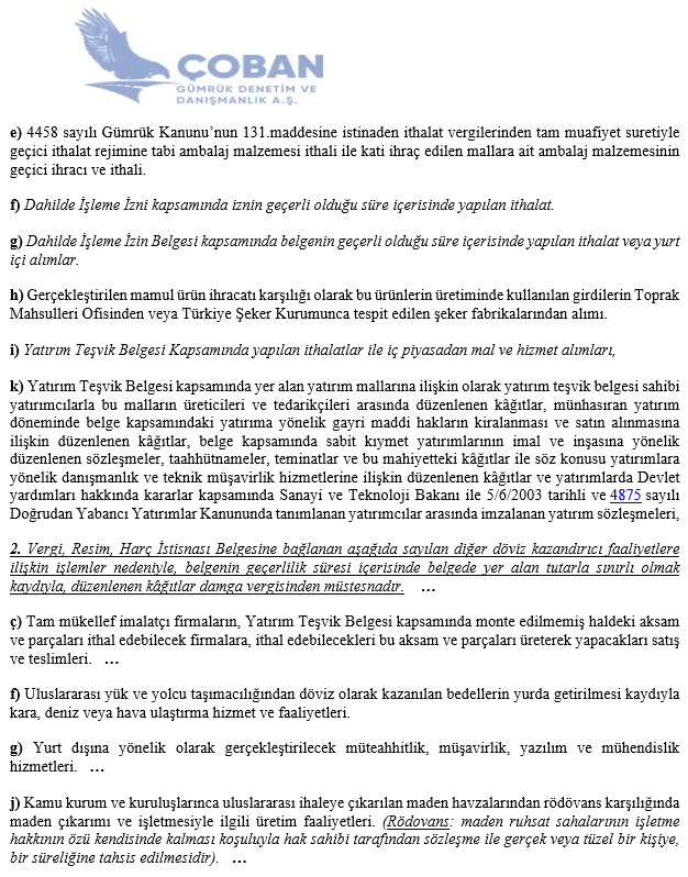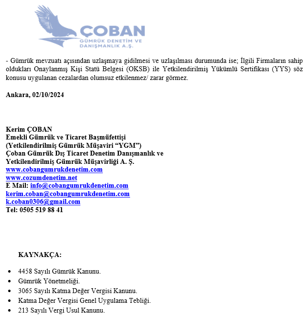 © Çoban Gümrük Denetim Danışmanlık. Tüm Hakları Saklıdır. Powered by Maple Yazılım.