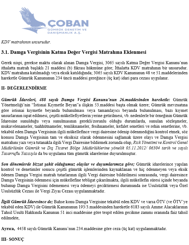 DAMGA VERGİSİNDE GÜMRÜK – MALİYE PASLAŞMASI VE UYGULANAN CEZALAR